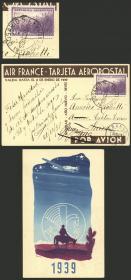 98 ARGENTINA - HISTORIA POSTAL - VUELOS Sobre / N°Cat.: MB. Tarjeta especial de la empresa Air France para el envío de saludos de fin de año con tarifa reducida, franqueada con 40c. y enviada el 23/DIC/1939 de Buenos Aires a Alemania, muy buena calidad, rara! Precio inicial: US$ 100 Precio actual: US$ 100 Oferte US$ 111 o más | |