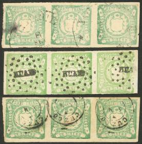 167 CUBA - CORREO MAMBÍ Lote / Nuevo con bisagra N°Cat.: Buena CORREO MAMBÍ: Correo de los insurgentes durante la guerra de la independencia (circa 1895/8), lote de sellos, tiras y bloques mayores (5 valores diferentes, en total 34 sellos), la mayoría de buena calidad, baja base! Precio inicial: US$ 50 Precio actual: US$ 50 Oferte US$ 56 o más | |