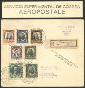 189 CHILE - HISTORIA POSTAL Sobre / N°Cat.: MB. 18/AGO/1928 Vuelo experimental Valparaíso - Santiago - Montevideo, vía Buenos Aires a cargo de la Cíe. Generale Aeropostale hasta la capital argentina, donde el correo se transbordaba a uno de los aviones franceses afectados al servicio semanal por la ruta atlántica, muy buena calidad! Precio inicial: US$ 250 Precio actual: US$ 250 Oferte US$ 275 o más | |