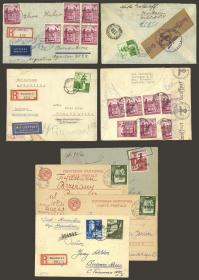 401 POLONIA - OCUPACIÓN ALEMANA - HISTORIA POSTAL Sobre / N°Cat.: MB. 4 Sobres y 2 tarjetas circulados en 1940, 3 sobres fueron enviados certificados a Argentina (2 por vía aérea con muy buenos franqueos al frente y dorso), excelente calidad general! IMPORTANTE: Recomiendo mirar TODAS las fotos de este conjunto, todo su contenido está completamente escaneado de ambos lados! Precio inicial: US$ 100 Precio actual: US$ 100 Oferte US$ 100 o más | |