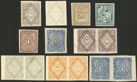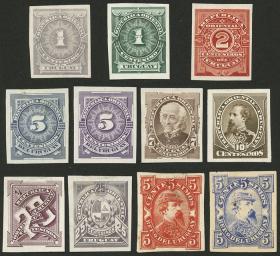 416 URUGUAY - EMISIONES GENERALES Lote / N°Cat.: Sc.54+otros Buena Sc.54 + otros, 1884/8, 11 pruebas de color impresas en papel delgado, sin dentar, incluyendo algunos diseños no adoptados, unos 2 o 3 con algún defectito, el resto de buena calidad! Precio inicial: US$ 100 Precio actual: US$ 100 Oferte US$ 100 o más | |