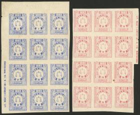 413 URUGUAY - EMISIONES GENERALES Multiplo / N°Cat.: Sc.46 MB. Sc.46, 1882 Balanza 1c., PRUEBAS en color ultramar y rosa, bloques de 12 sin dentar con borde de hoja con leyenda del impresor, un sello en cada bloque con defectito, el resto de excelente calidad! Precio inicial: US$ 100 Precio actual: US$ 100 Oferte US$ 111 o más | |