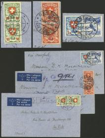 410 SUIZA - HISTORIA POSTAL Sobre / N°Cat.: MB. 3 Sobres aéreos enviados entre el 26/ABR y el 26/DIC/1940 de Geneve a Sao Paulo (Brasil) con franqueos de 2,40 y 1,80 (2) Francos formados con sellos SIN grilla, excelente calidad! ATENCIÓN: Recomiendo mirar TODAS las fotos de este conjunto, todo su contenido está escaneado de ambos lados! Precio inicial: US$ 100 Precio actual: US$ 100 Oferte US$ 100 o más | |