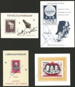 411 TEMA EXPLORACIÓN DEL ESPACIO - LOTES Y COLECCIONES Lote / Nuevo Mint N°Cat.: Buena FIRMAS DE ASTRONAUTAS: 20 bloques de distintos países con las firmas autógrafas hechas de puño y letra por los astronautas Neil Armstrong, Dave Scott, Eugene Cernan, Donn Eisele, Gordon Cooper, J. Mc.Divitt, F. Borman, R. Schweickart, Johnn Glenn, E. Mitchell, Scott Carpenter, J. Swigert, W.Cunningham, Thomas Stafford, Stuart Roosa, W. Schirra, Alan Bean, J. Lovell, R. Gordon, y C. Conrad. Dos o tres con leves defectitos en la goma, el resto nuevo mint y de excelente calidad, interesante conjunto! Precio inicial: US$ 750 Precio actual: US$ 750 Oferte US$ 750 o más | |