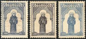 402 PORTUGAL - EMISIONES GENERALES Lote / Sin usar (sin goma) N°Cat.: Sc.144/6 Valor de catál.: US$1.500 Aceptable-Buena Sc.144/146, 1895 700º Aniversario de San Antonio de Padua, los 3 valores altos de la serie nuevos sin goma, con pequeños puntos de óxido, buen aspecto, raros, valor de catálogo US$1.500 Precio inicial: US$ 200 Precio actual: US$ 200 Oferte US$ 200 o más | |
