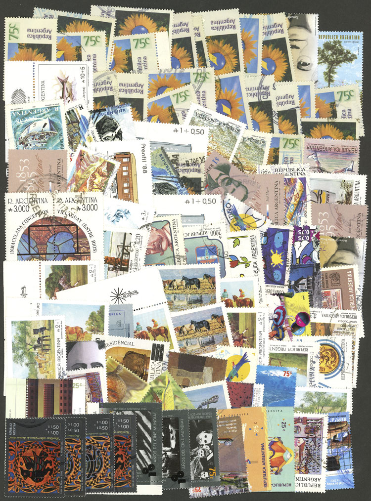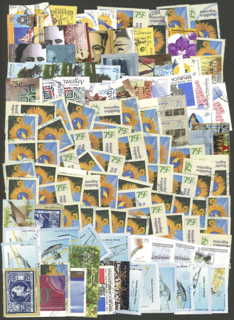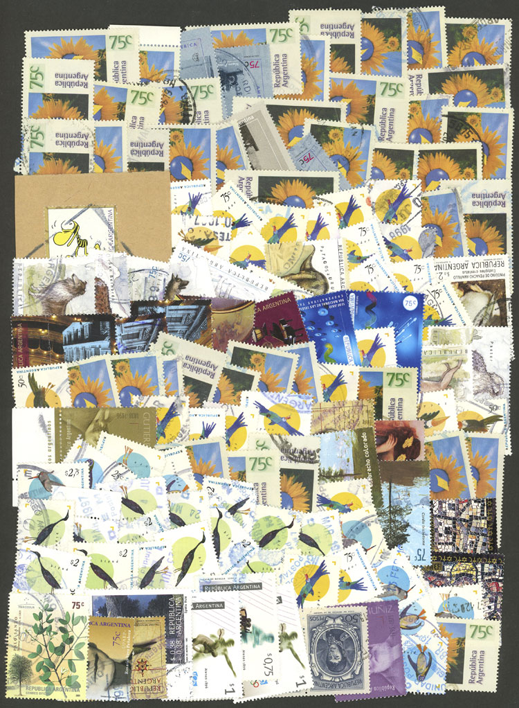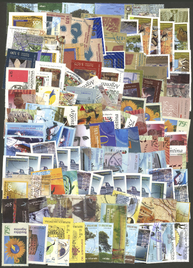 Buena-MB Lote conteniendo MUCHOS CIENTOS de sellos modernos usados mayormente de buena a MB calidad, hay tanto conmemorativos como de diferentes series básicas, baja base!!