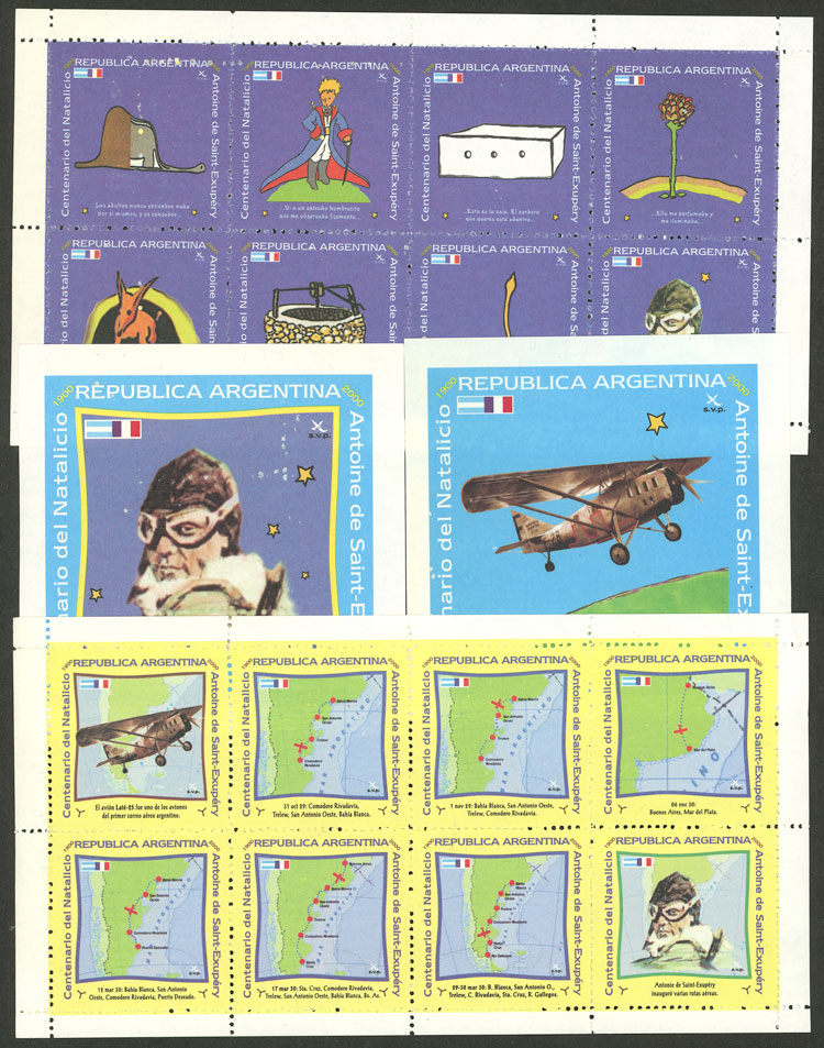 1067 ARGENTINA - VIÑETAS Remate #2538: ARGENTINA: subasta 'liquidación' con bases muy bajas y muchos lotes de interés!! Serie / Nuevo Mint N°Cat.: MB. CENTENARIO del Natalicio de Saint-Exupery: lote conmemorativo de muy buena calidad, alguna de las hojitas con los dentados separados Precio inicial: US$ 25 Precio actual: US$ 25 Oferte US$ 28 o más Cierre: 2025-10-09 22:15:00