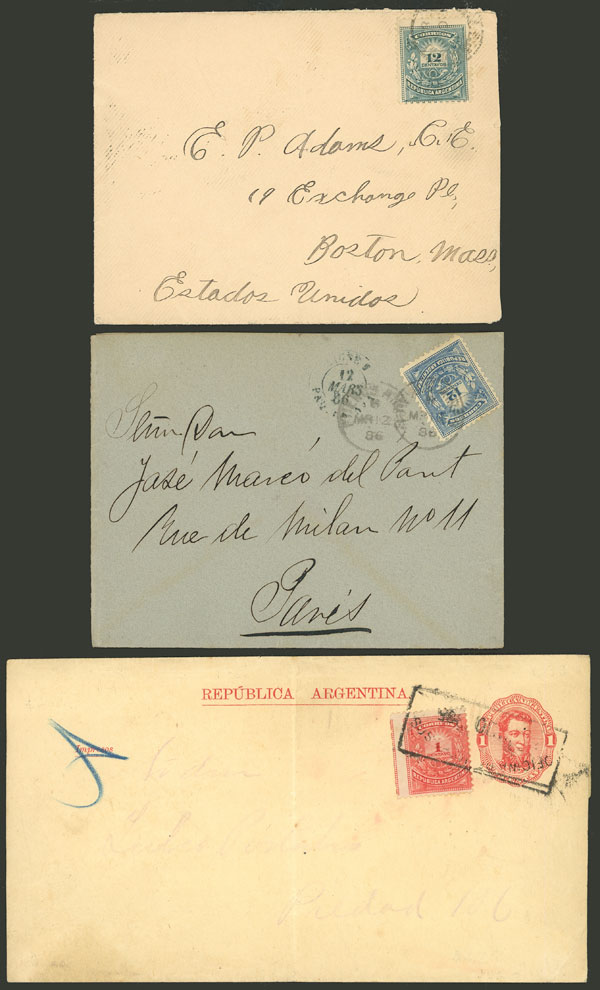 MB. GJ.78 + 79 + 79A, El primero sobre una faja postal de 1c. y los otros en sendos sobres, todos circulados, MB calidad!