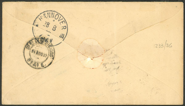 MB. GJ.129, 12c. Alberdi con DENTADO MIXTO, pareja en un EP (sobre) de 5c., total 29c., enviado por correo certificado sin retorno de Santa Fe a Hannover el 3/AGO/12892, MB! La tarifa correcta era de 28c., por lo que se franqueó con 1c. de más!