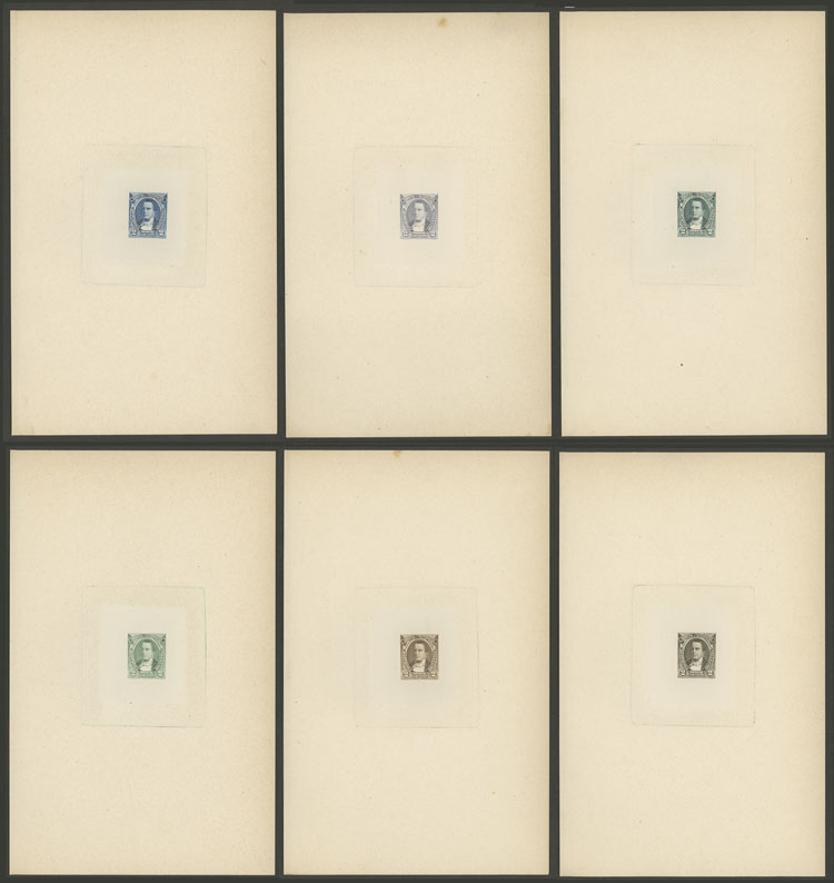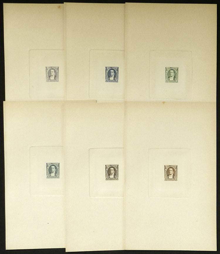 MB. GJ.102, 2c. Derqui, 6 CUÑOS (segundo estado, adoptado, en diferentes colores) impresos en papel delgado pegado sobre cartón, excelente calidad! Valor de venta US$100 o más cada uno, oportunidad!