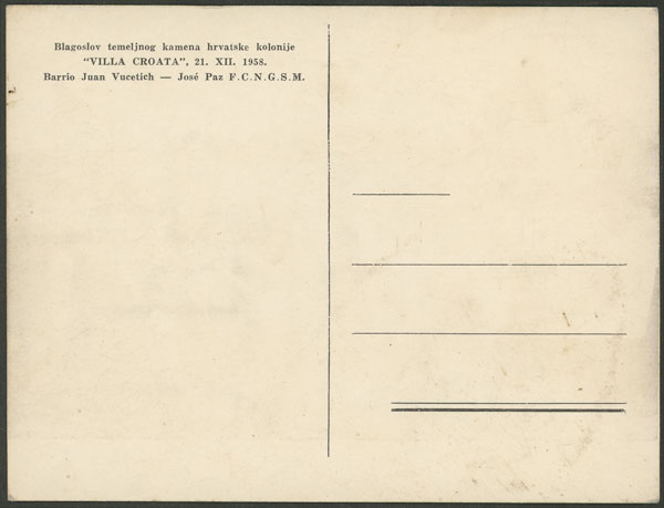 MB. VILLA CROATA: rara tarjeta con espectacular vista de inmigrantes croatas, tomada el 21/DIC/1958, Barrio Juan Vucetich, José C. Paz (provincia de Bs.Aires), MB calidad, rara!