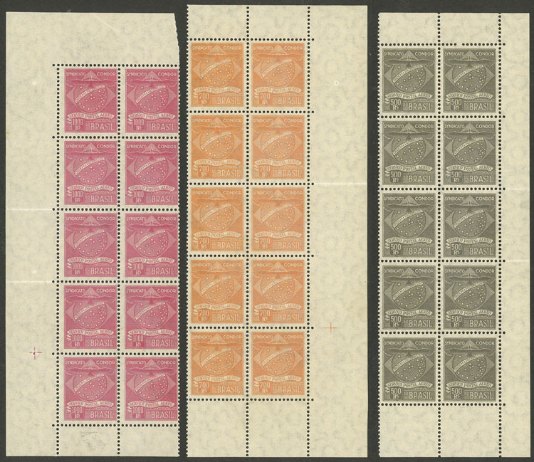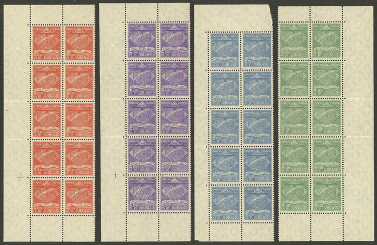 MB. Sc.1CL1/1CL7, 1927 Condor y Cruz del Sur, serie completa de 7 valores en bloques de 10 nuevos mint, excelente calidad!