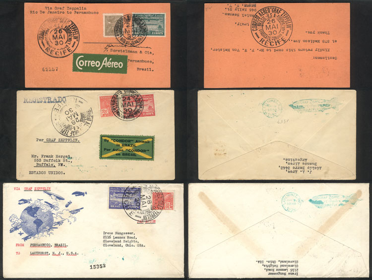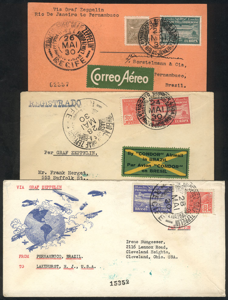 MB. 3 Sobres enviados por ZEPPELIN a USA entre el 24 y 28/MAY/1930, franqueados cada uno con un sello de la serie Sc.4CL1/4, muy buena calidad, valor según catálogo Scott US$475