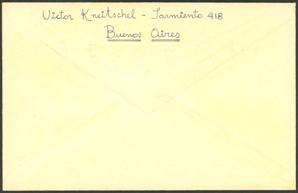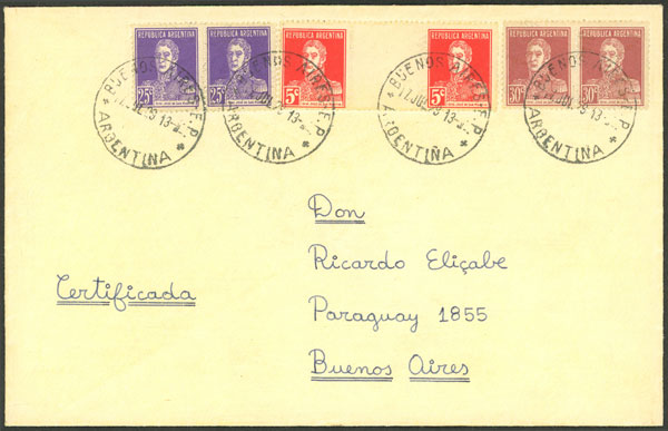 MB. GJ.599EV, 5c. San Martín con ENTRECINTA VERTICAL + otros valores en un sobre circulado en Buenos Aires el 17/JUL/1929, excelente calidad, gran rareza!