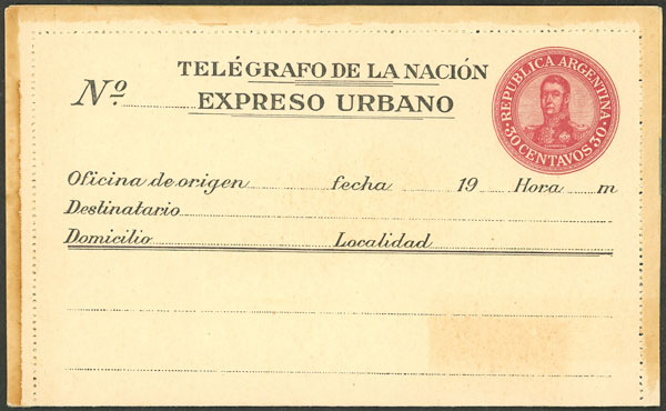 Entero postal / N°Cat.: GJ.EXU-1 Valor de catál.: US$150