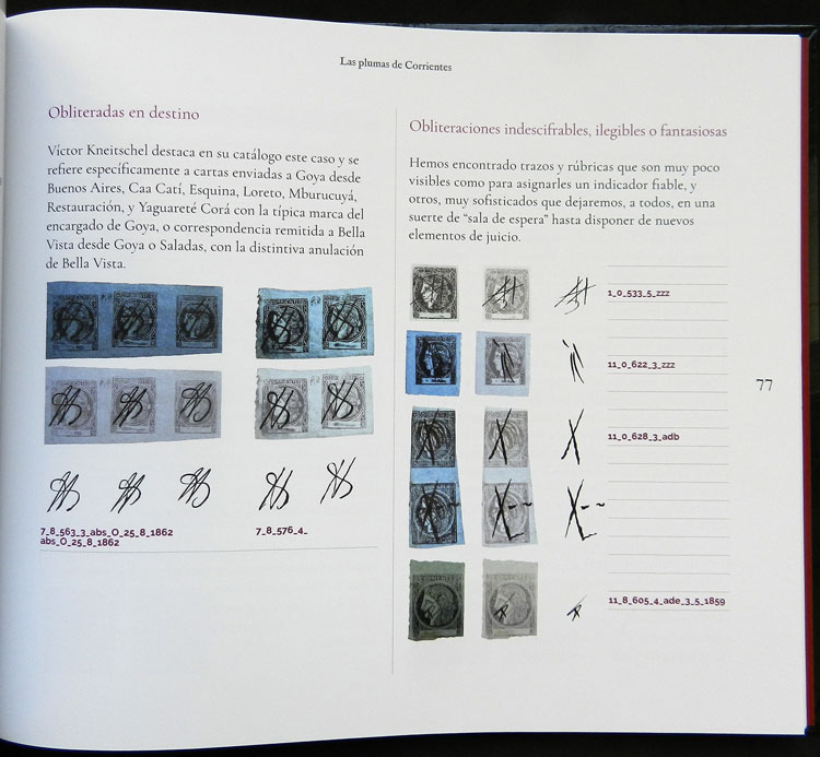 MB. Magnífico libro sobre las OBLITERACIONES A PLUMA EN LOS SELLOS DE LA PROVINCIA DE CORRIENTES: DICK, Enrique: Las plumas de Corrientes, estudio de las obliteraciones a pluma en esta provincia, sus antecedentes y muchísima infomación más! Importante estudio de las diferentes y variadas obliteraciones a pluma en los sellos correntinos, con sus rasgos particulares, y tintas aplicados en cada oficina postal. Con una tipificación propia, el autor busca desentrañar los trazos característicos de cada localidad de la provincia, entre los años 1856 y 1880. Son 123 páginas lujosamente encuadernadas en tapa dura, a todo color y de gran calidad, con muchísima información que será de gran utilidad para el coleccionista tanto principiante como el más avanzado. Tirada muy reducida!! Lote pesado, su envío al exterior desde Argentina costará aproximadamente US$50, por favor tenga en cuenta este importe al hacer su oferta.