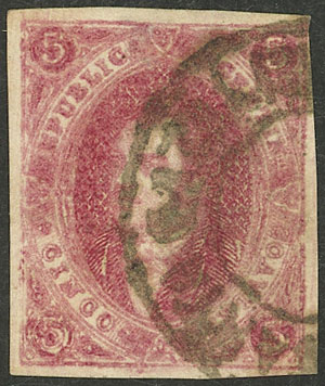 MB. GJ.34, 8ª Tirada con el rarísimo matasello SANTA CATALINA en doble círculo, de la provincia de Jujuy. Tiene una ínfima peladurita al dorso, sin importancia alguna dada la rareza de su obliteración y la belleza de su frente perfecto, único que he visto en miles y miles de Rivadavias que han pasado por mis manos en más de 40 años!!